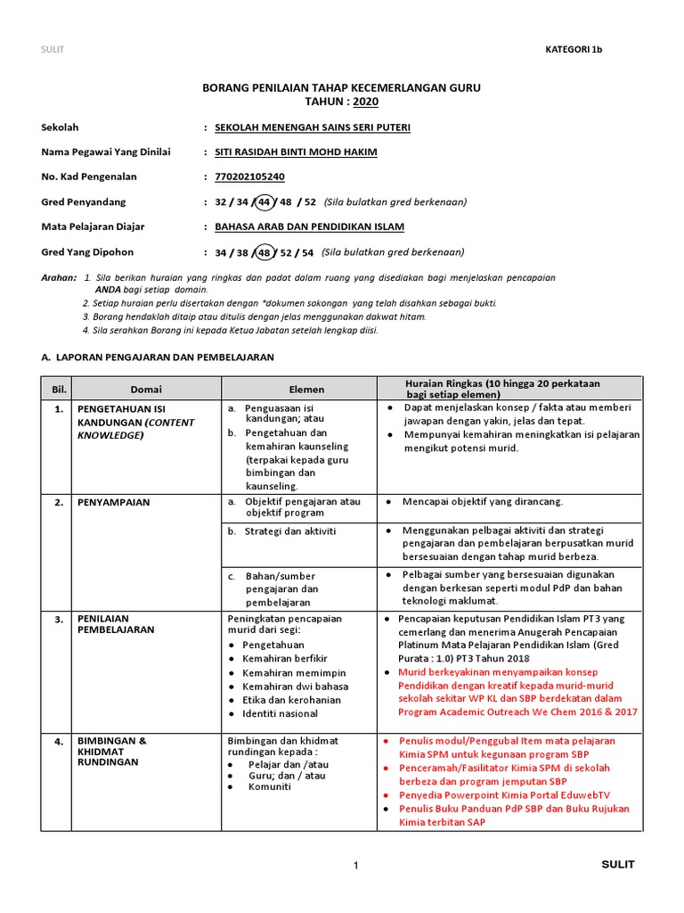 Borang Penilaian Tahap Kecemerlangan Dg48 Siti Pdf
